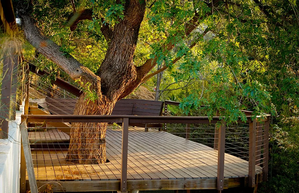 Create a large non-intrusive deck on the forest slope without cutting any trees
