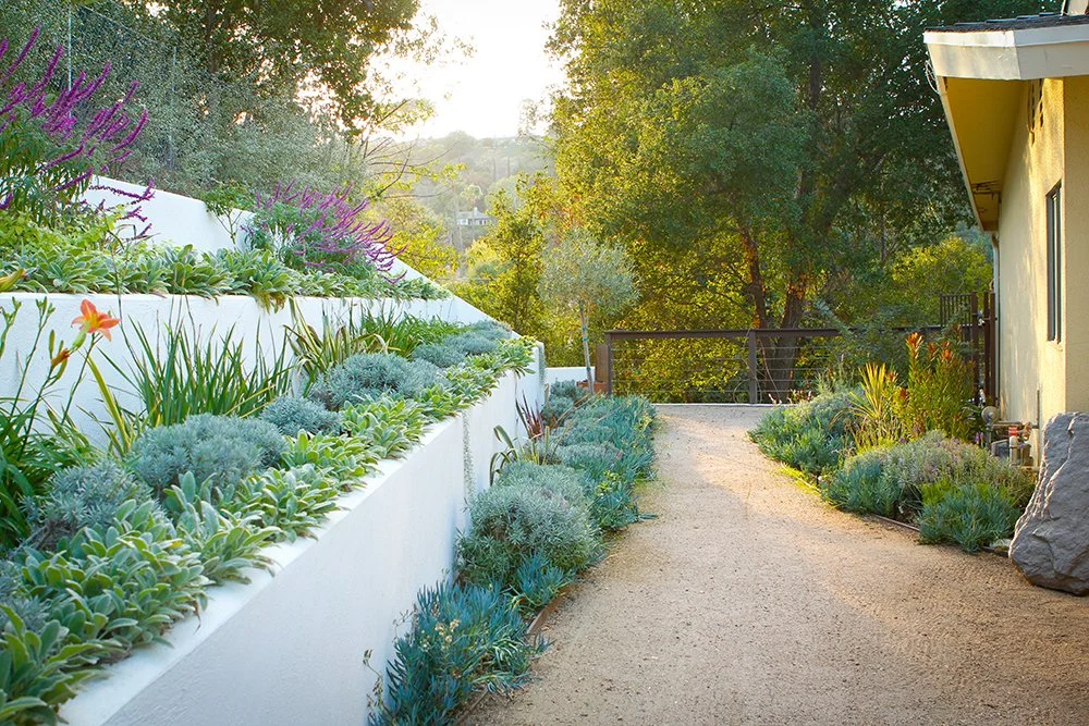 Terraced hillside for a contemporary Mediterranean colorful garden